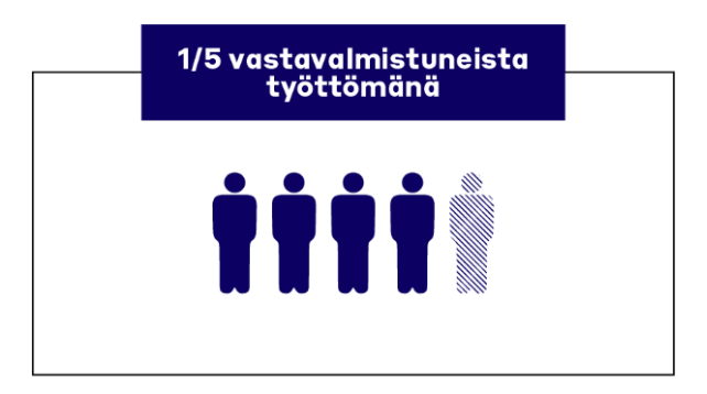 Valmistumisen jälkeen esimerkiksi määräaikaisuus voi tehdä katkoksia työssäoloon. Noin viidesosa insinööreistä on työttömänä kahden vuoden sisällä valmistumisesta. Lähteet: Insinööriliiton Opiskelijakysely ja Vastavalmistuneiden sijoittumistutkimus.