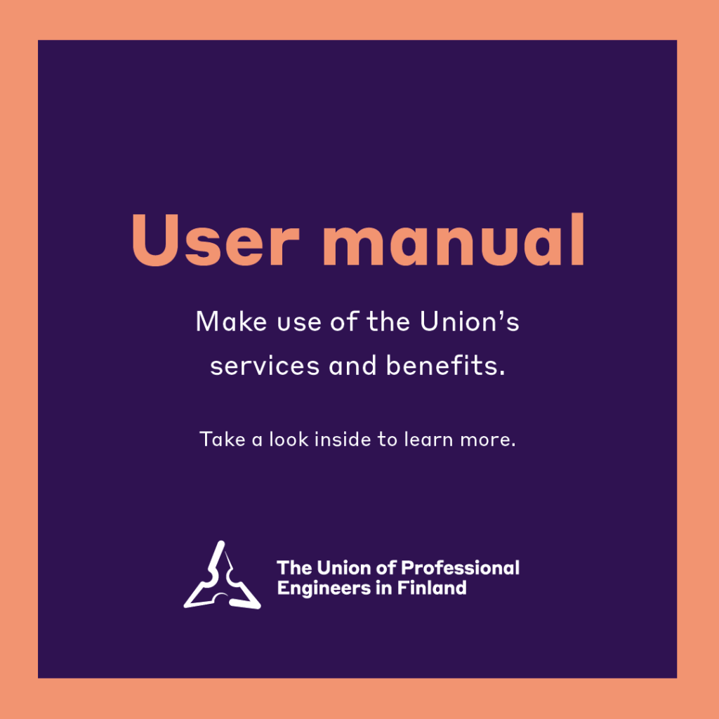 Kokoontaitettu User manual – Make use of the Union’s services and benefits on avattuna A3-kokoinen esite, joka kokoaa yhteen Insinööriliiton jäsenen edut ja palvelut.